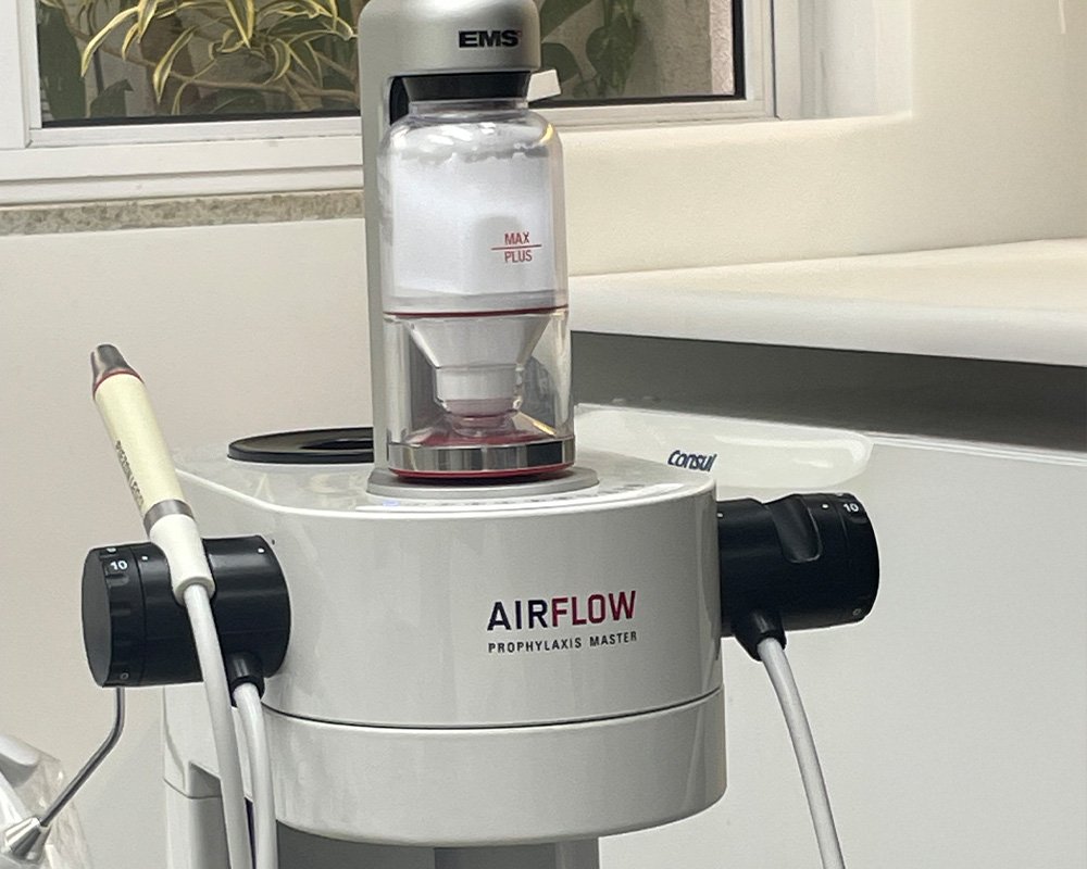 Este equipamento possibilita uma outra experiência na profilaxia. Uma tecnologia suíça, desenvolvida para entregar conforto e eficiência, e um protocolo preventivo único. Trabalhamos com água aquecida, fluxo laminar do jato, pó extremamente fino e ultrassom elétrico – todos estes recursos fazem com que a experiência de uma simples profilaxia seja algo nunca antes experenciado, você nem sente que está fazendo uma limpeza. É realmente um ponto de virada na área da prevenção.