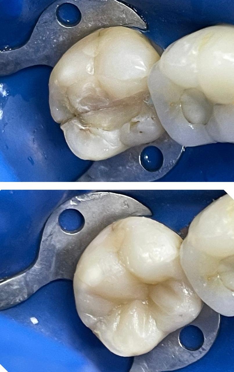 Por que trocar restaurações sem cárie? A Odontologia tem evoluído muito, e materiais que possuem adesão química ao dente restauram melhor a estrutura do dente. Isto é importante em restaurações amplas e principalmente em pacientes com apertamento dentário para evitar fraturas.